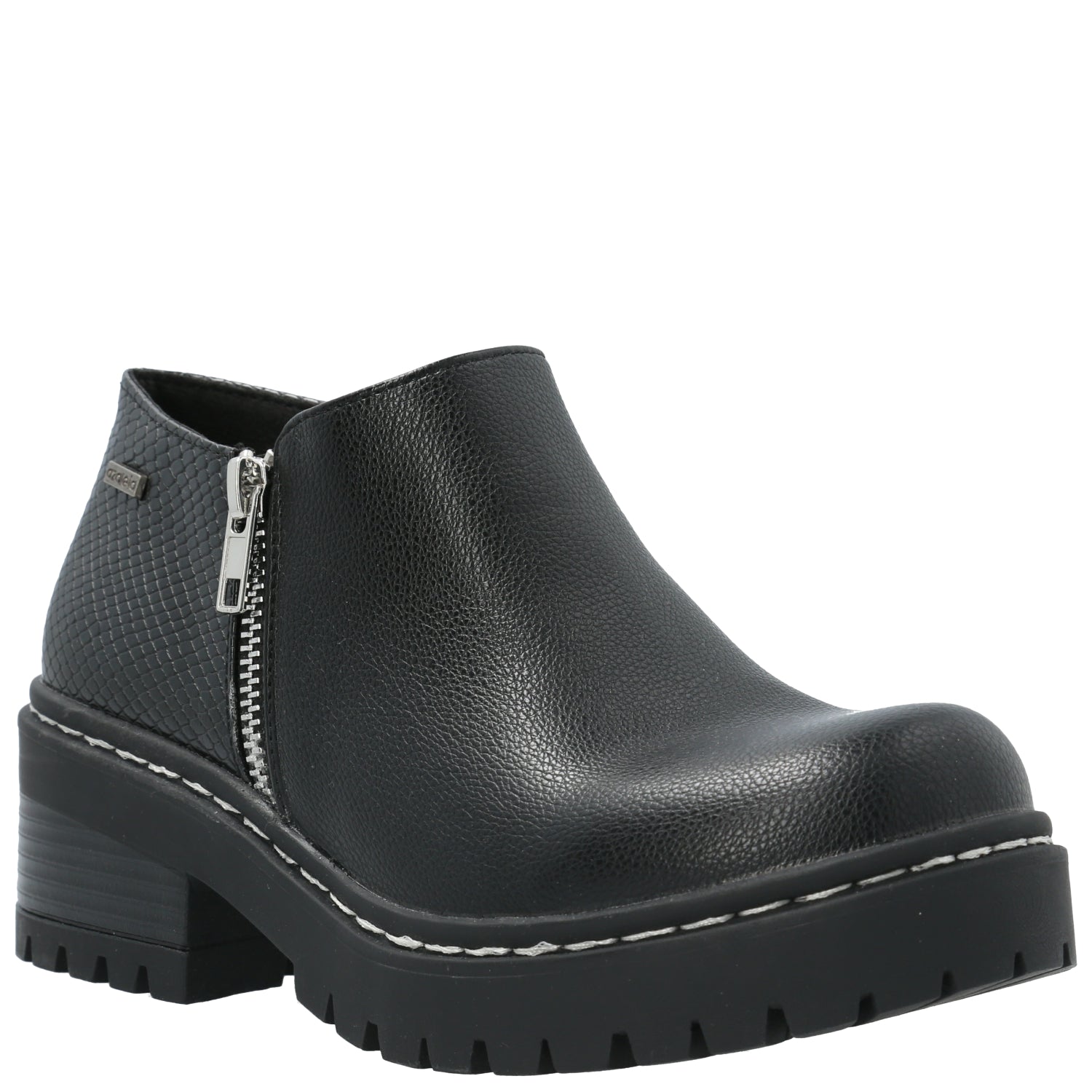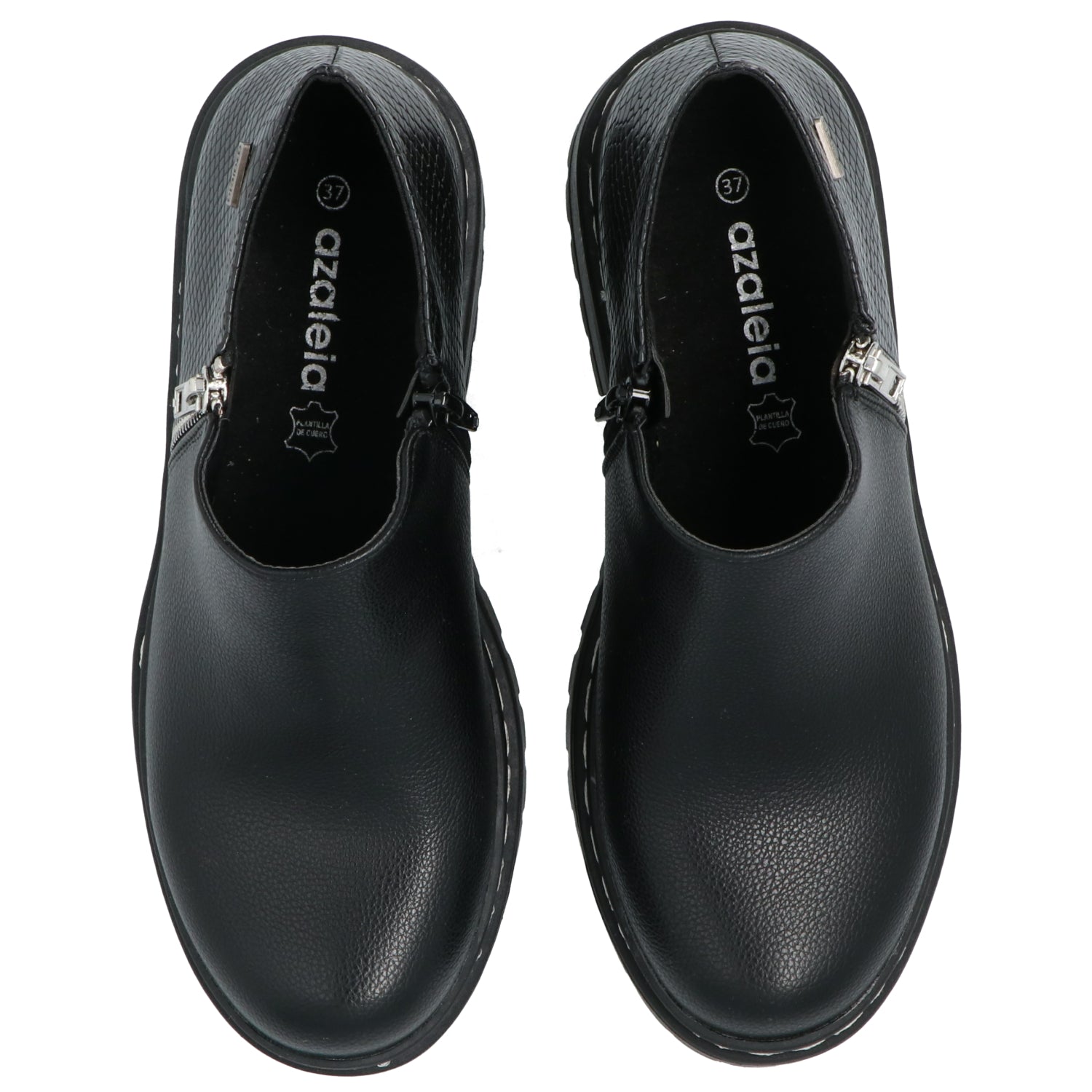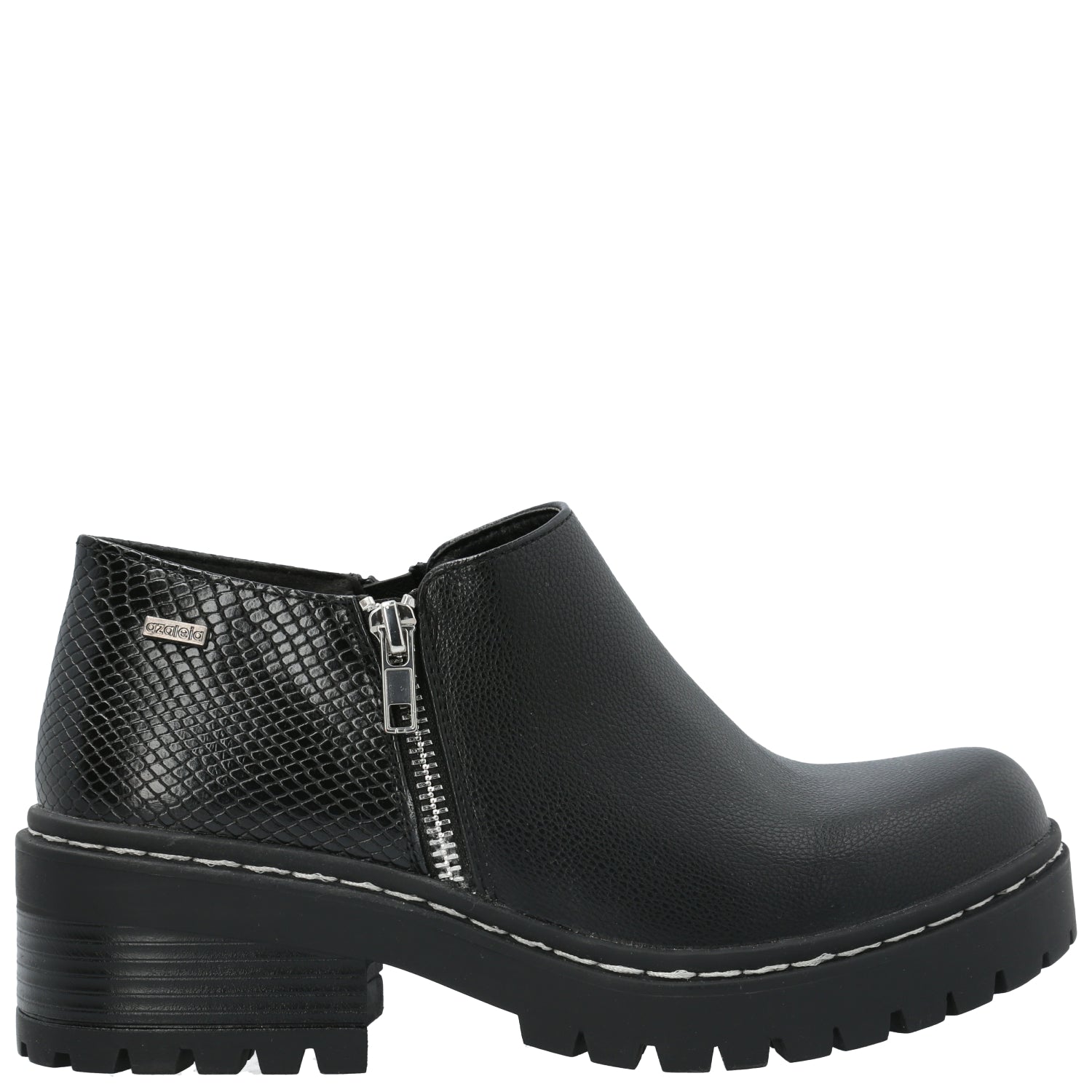 Botín mujer Azaleia con aplicación de cierre lateral y combinación de materiales en capellada de distintas texturas, cierre interior que permiten un mejor ajuste del calzado y pespuntes en planta. Plantilla con tecnología memory foam para un mayor confort.