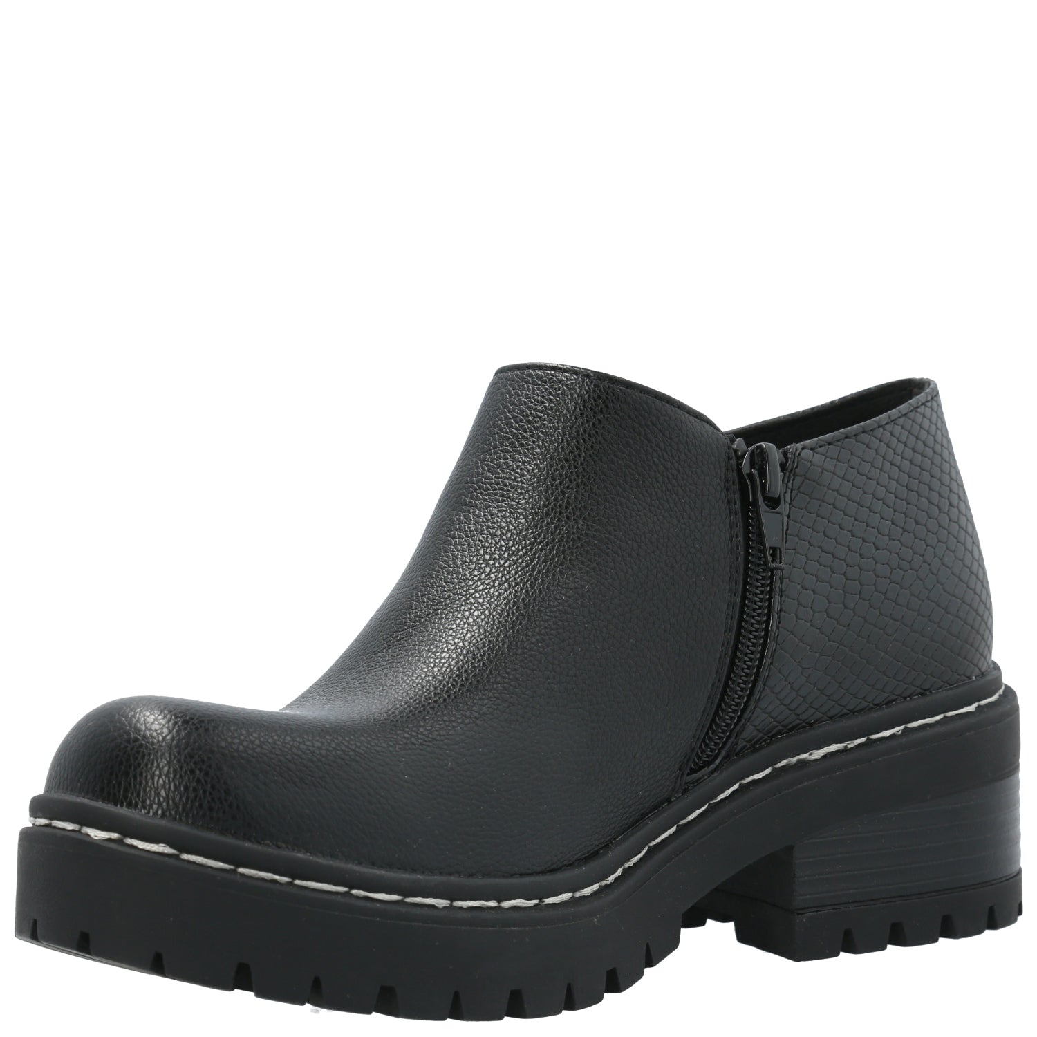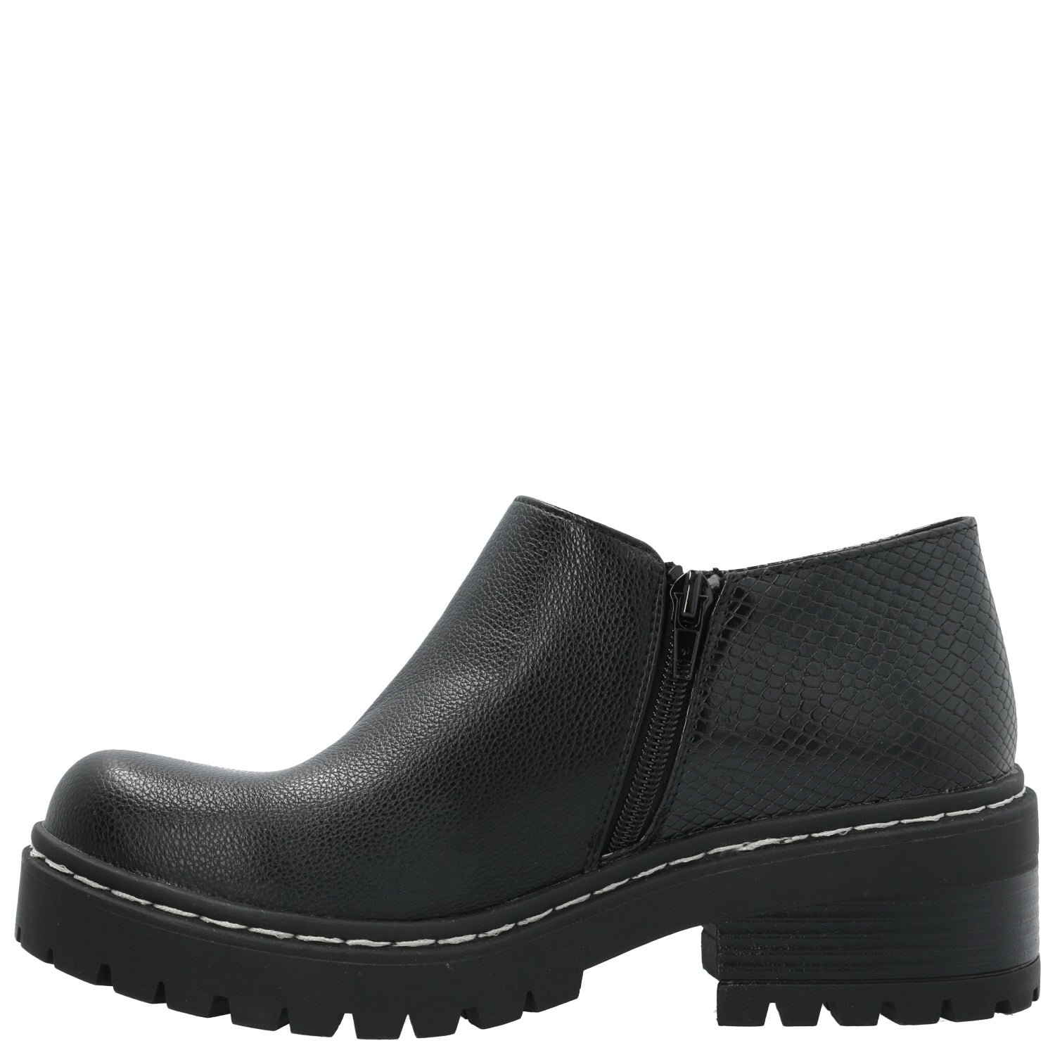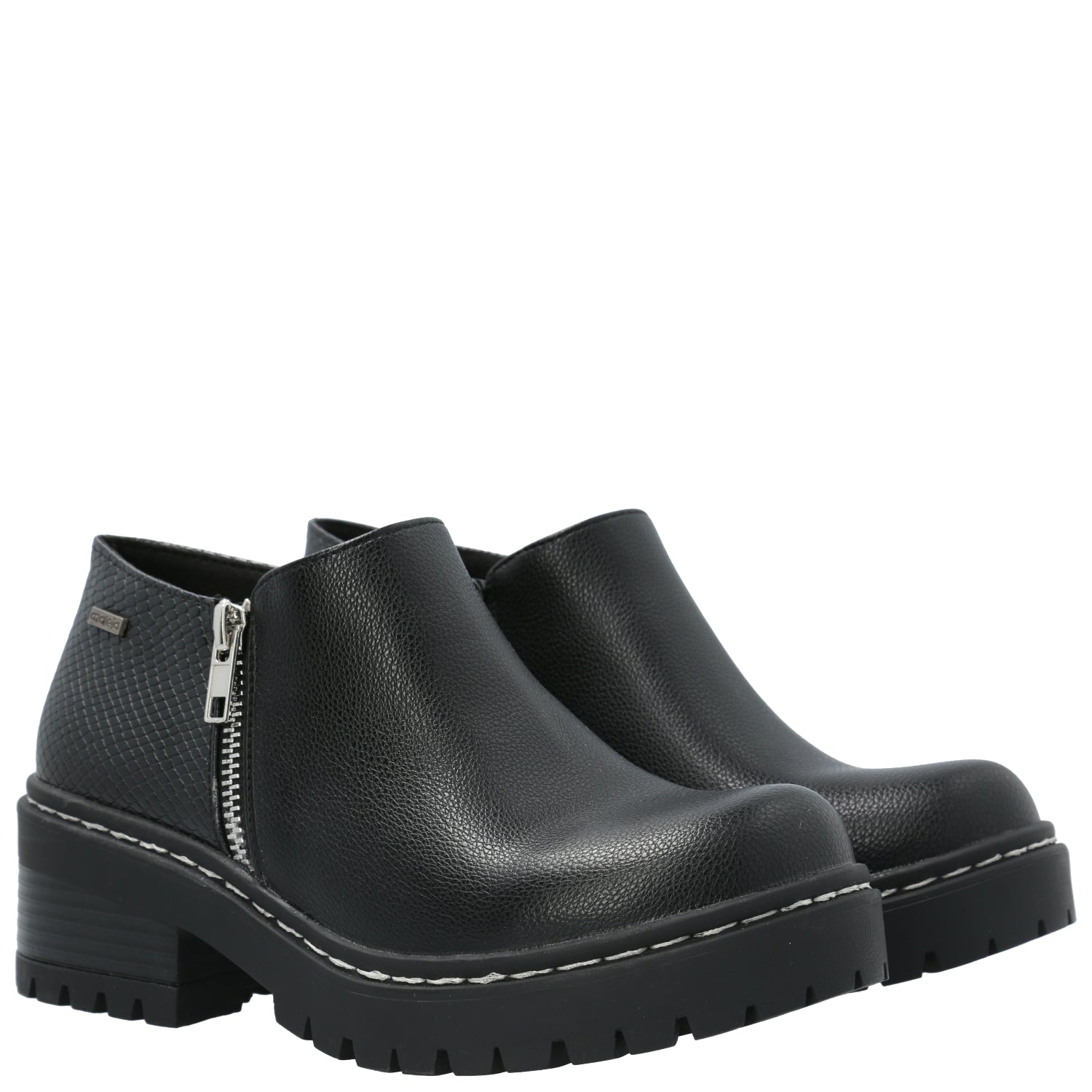 Botín mujer Azaleia con aplicación de cierre lateral y combinación de materiales en capellada de distintas texturas, cierre interior que permiten un mejor ajuste del calzado y pespuntes en planta. Plantilla con tecnología memory foam para un mayor confort.