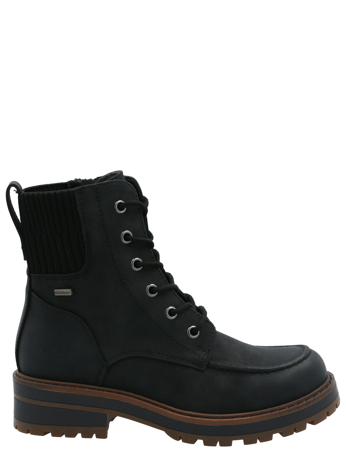 Botín mujer Azaleia con plantilla de cuero de alta densidad que absorbe la humedad del pie además de otorgar amortiguación y confort al caminar. El cierre interior permite un mejor ajuste, mientras que el elástico lateral ayuda a que el botín se adapte a las necesidades de cada persona. Pull up para facilitar postura y cordones.