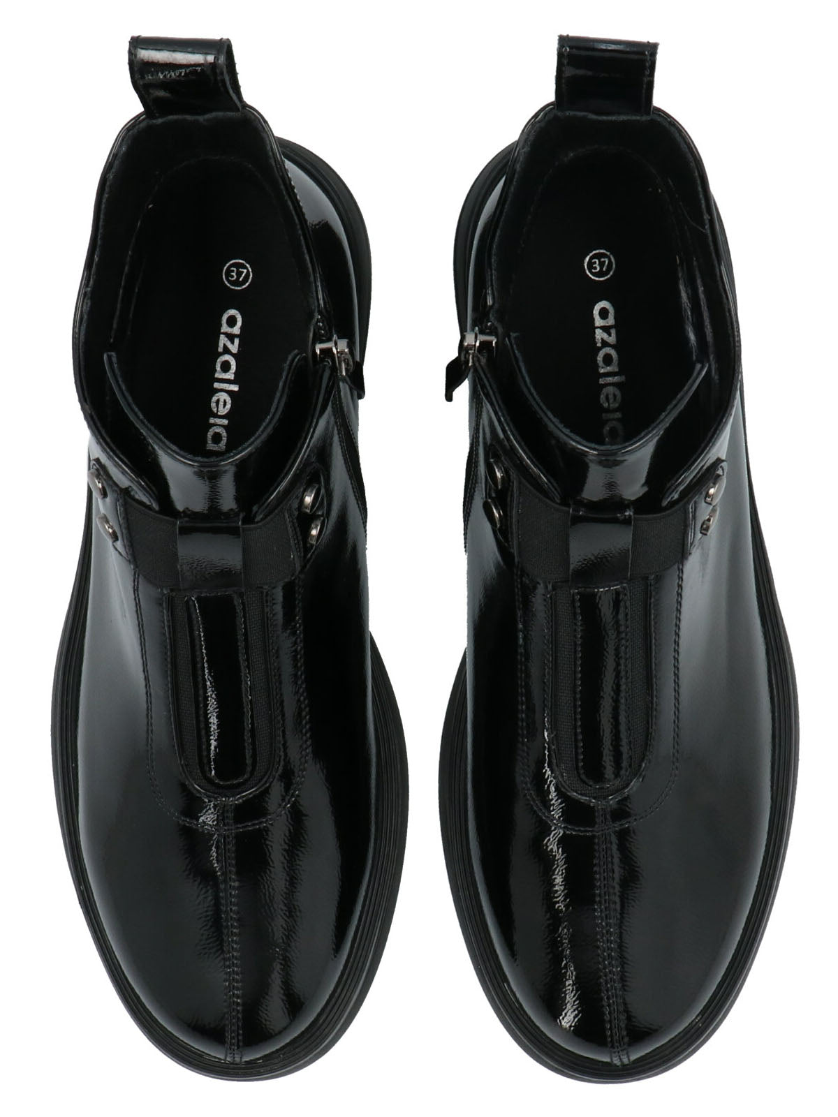 Botín mujer Azaleia con elástico lateral exterior que facilita el calce y proporciona mayor comodidad, posee cierre interior de ajuste con capellada estilo charol.