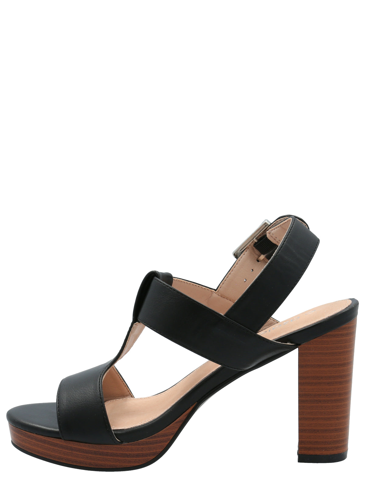 Sandalia mujer vestir Azaleia. Taco alto tipo columna y plataforma para mayor estabilidad. Capellada con correas tipo T que estiliza mejor el pie, ajuste con correa al tobillo. Plantilla cuero