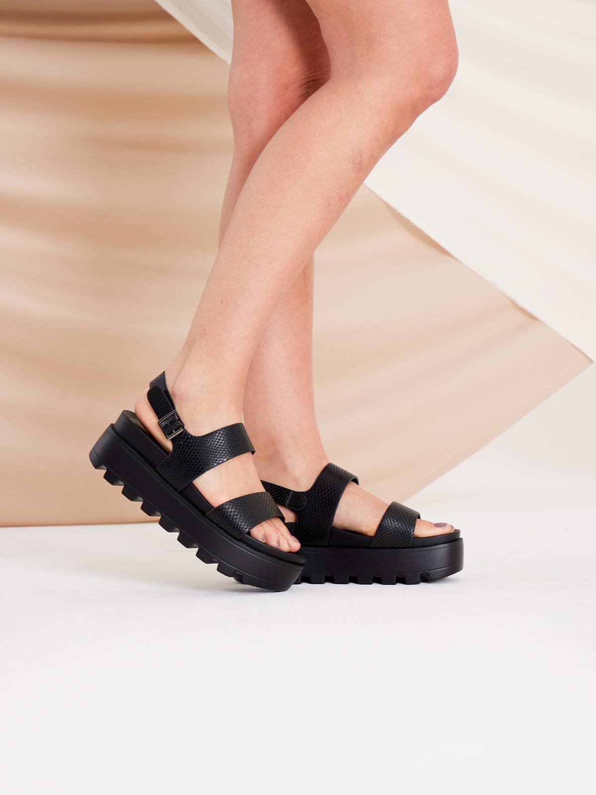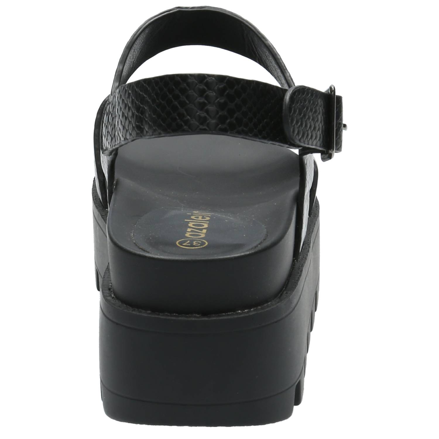 Sandalia mujer Azaleia con parche acolchado en talón que brinda una mayor amortiguación y comodidad ayudando a reducir el impacto en esa área sensible al caminar, posee correa con hebilla en talón que permiten un ajuste acorde a cada necesidad.