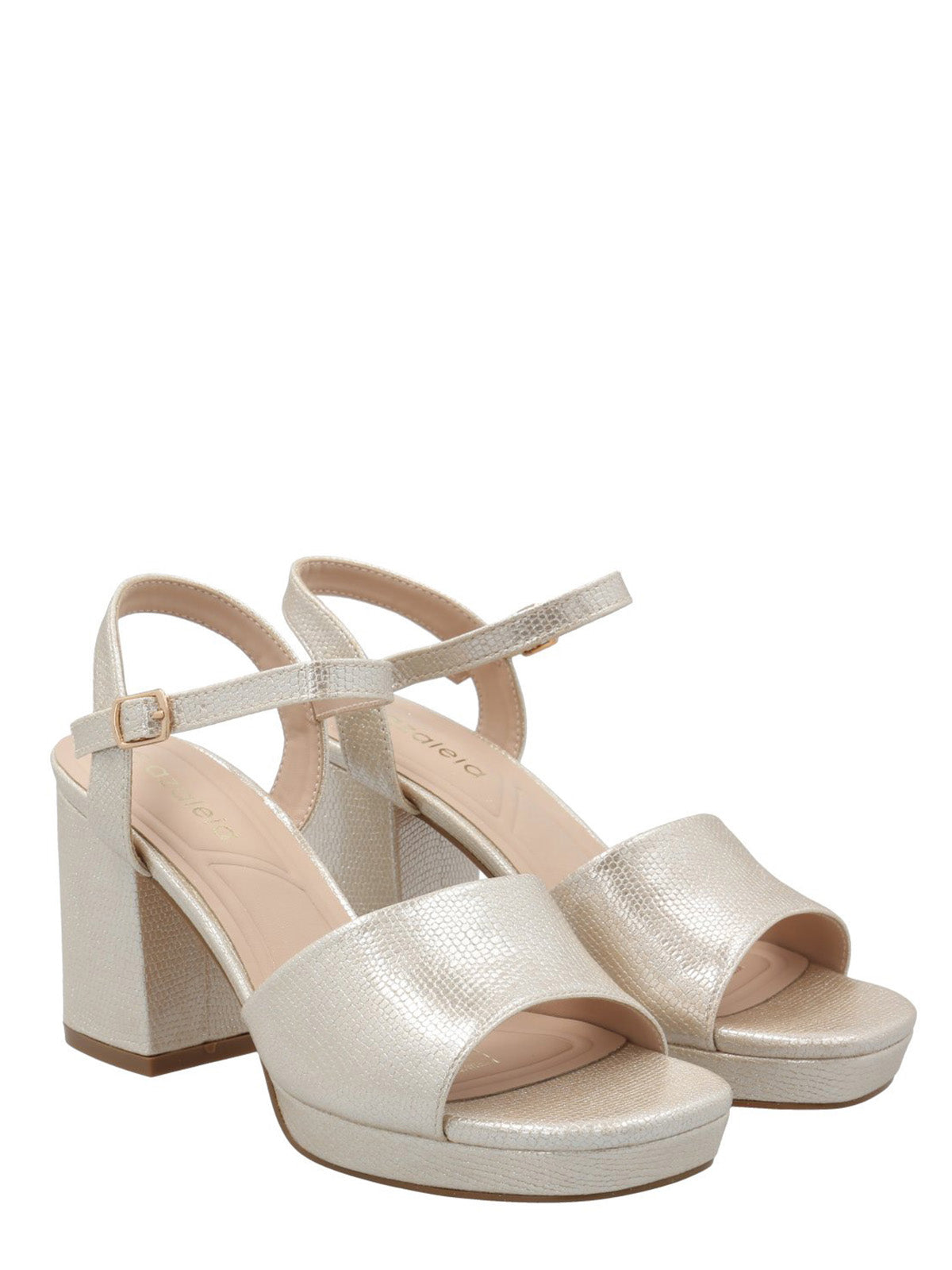 Sandalia mujer Azaleia, es la elección perfecta para mujeres que buscan un toque de elegancia y feminidad en su calzado. Es un diseño delicado y sofisticado, con toques brillantes que te harán lucir espectacular. La altura del taco y la plataforma le dan modernidad y un balance perfecto entre estilo y comodidad.