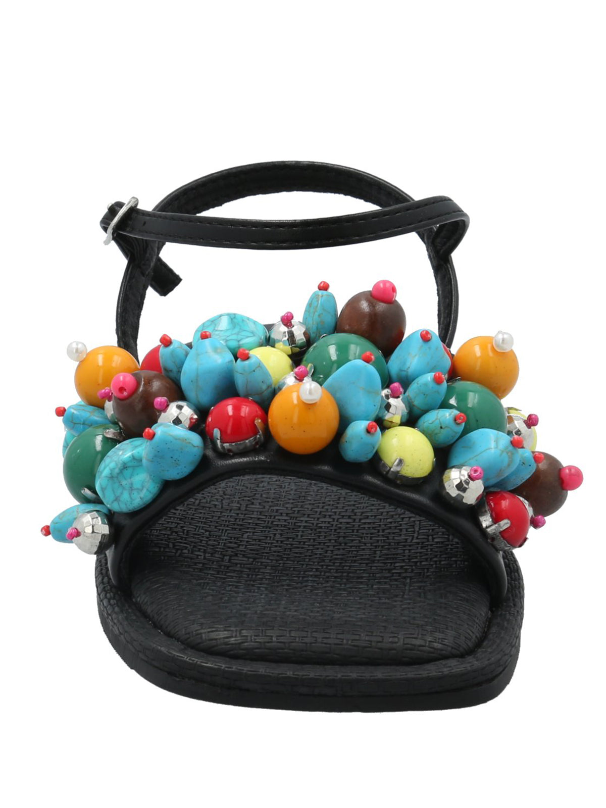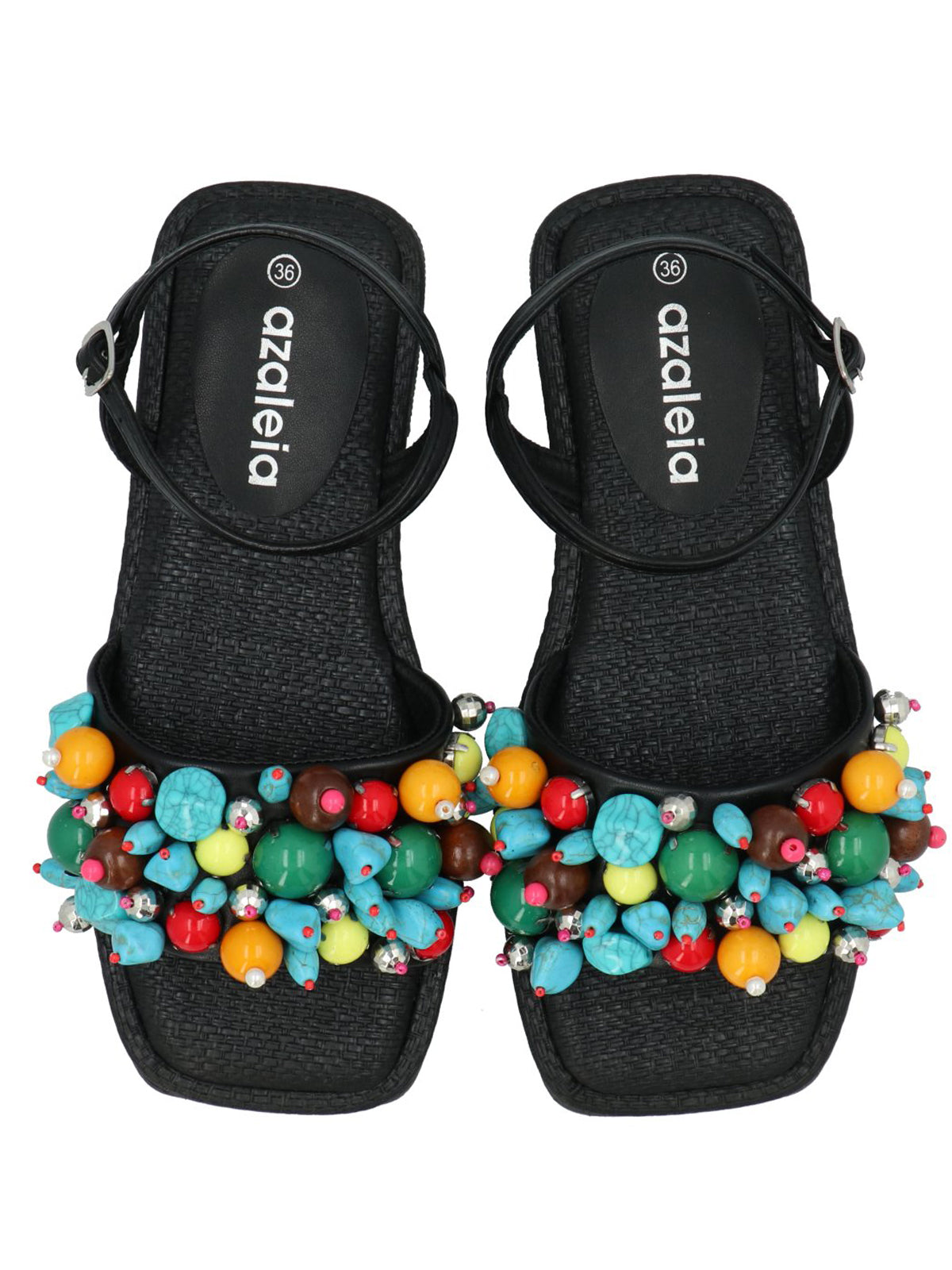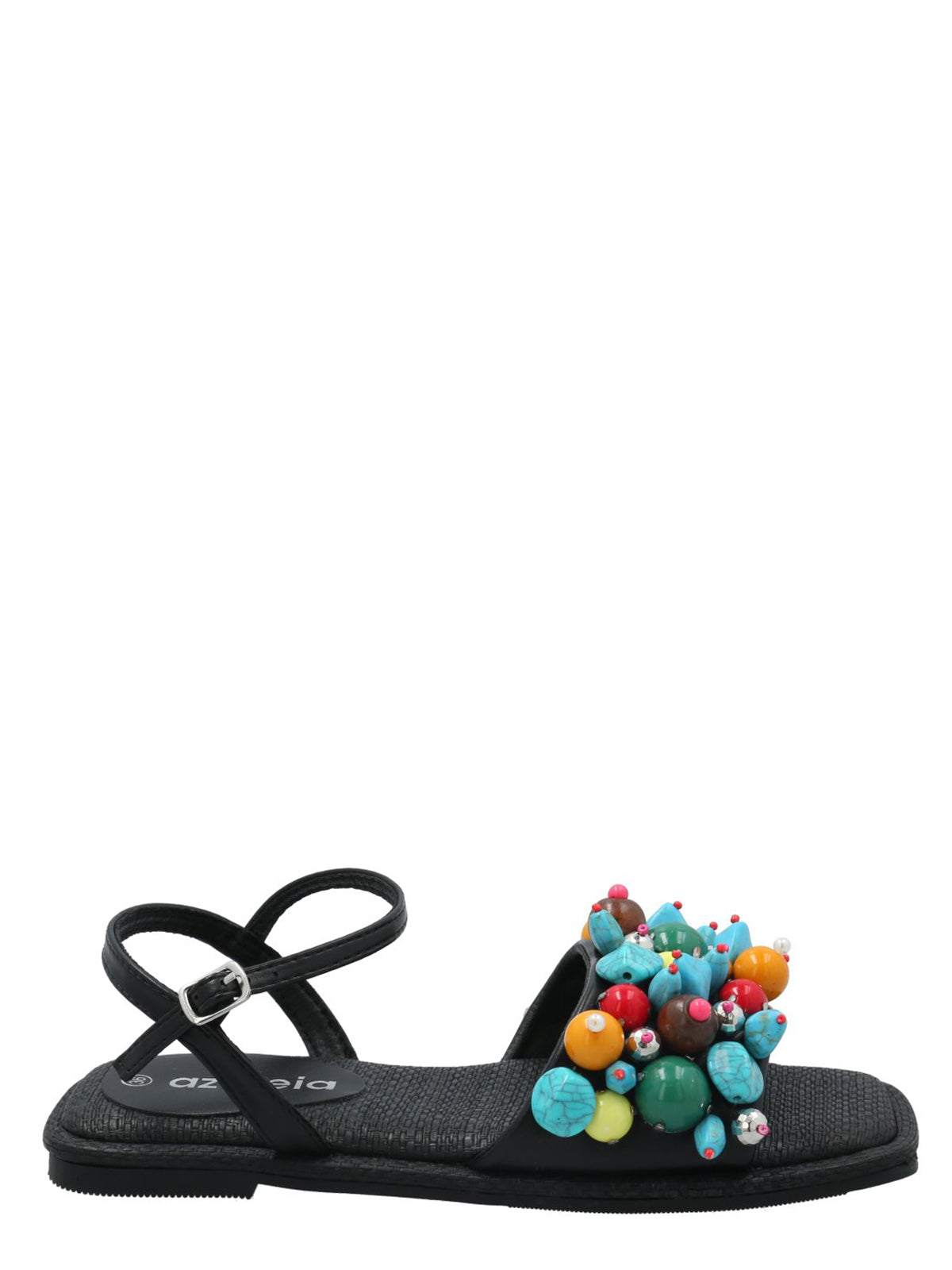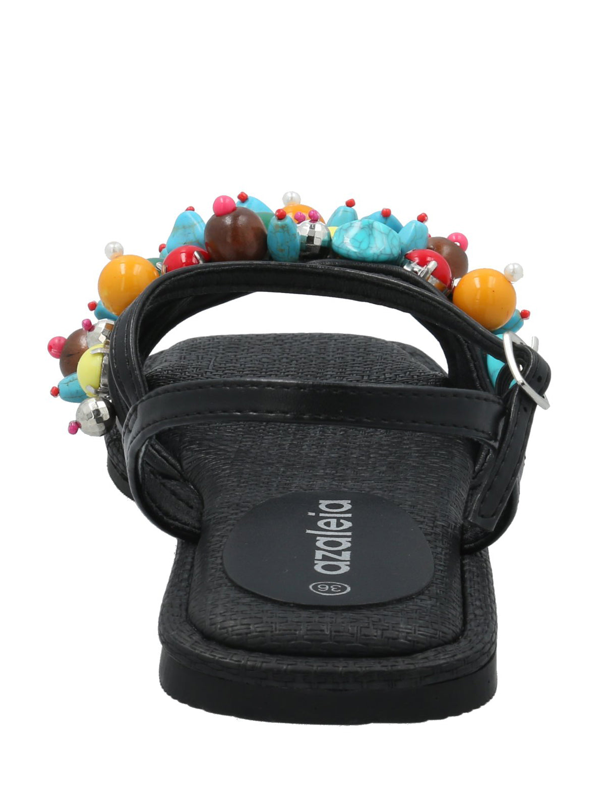 Sandalia mujer Azaleia, diseño muy vanguardista con aplicación de piedras que elevan cualquier atuendo. Se complementa con un taco plano pero con una plantilla extra acolchada que proporciona una experiencia de uso sumamente confortable.
