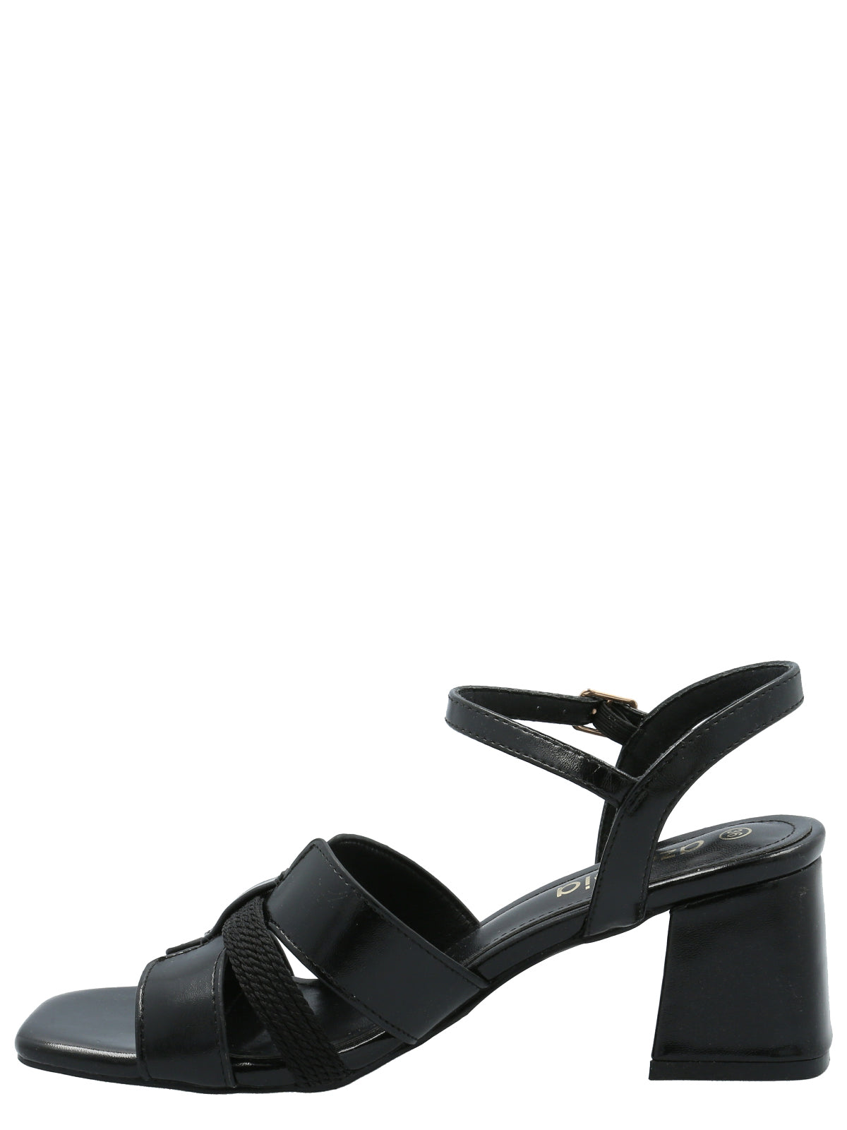 Sandalia mujer vestir Azaleia. Taco cuadrado. Capellada charol negro, ajuste correa al tobilla, perfectas para usar en distintas ocasiones. Plantilla cuero