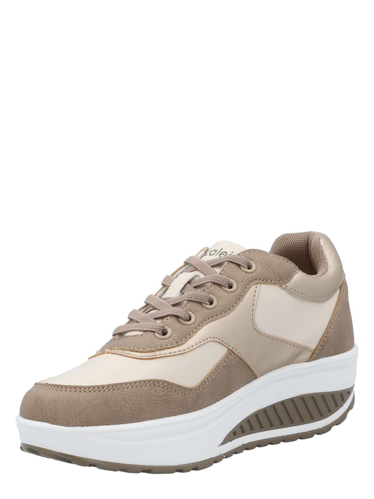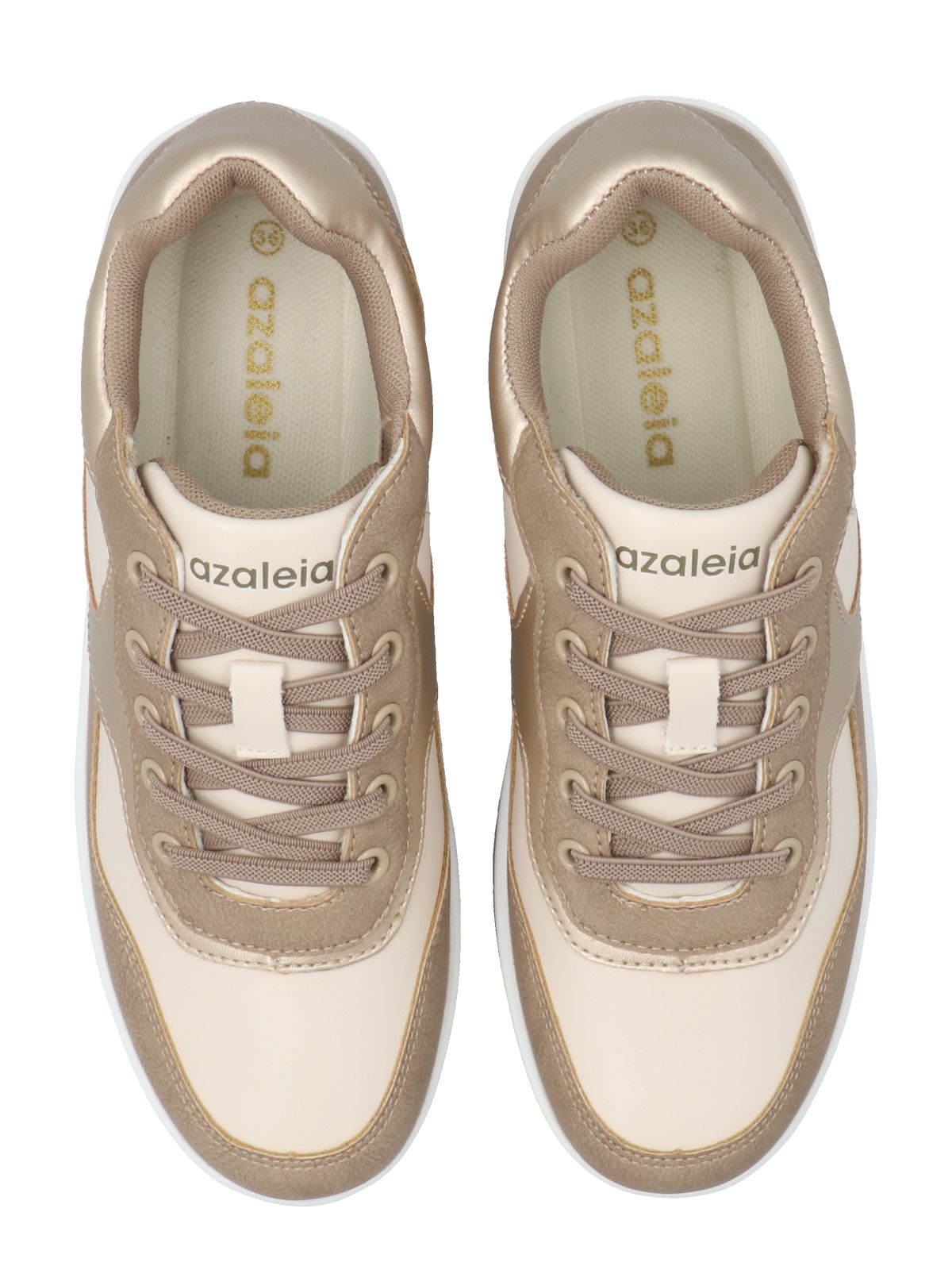 Zapatilla mujer Azaleia. Clásico modelo que combina materiales en malla mesh, colores beige con toques dorados, tiene plantilla de alta densidad que aporta máxima comodidad. El taco más la plataforma proporcionan la altura perfecta para estilizar tu figura sin comprometer la comodidad de tus actividades.