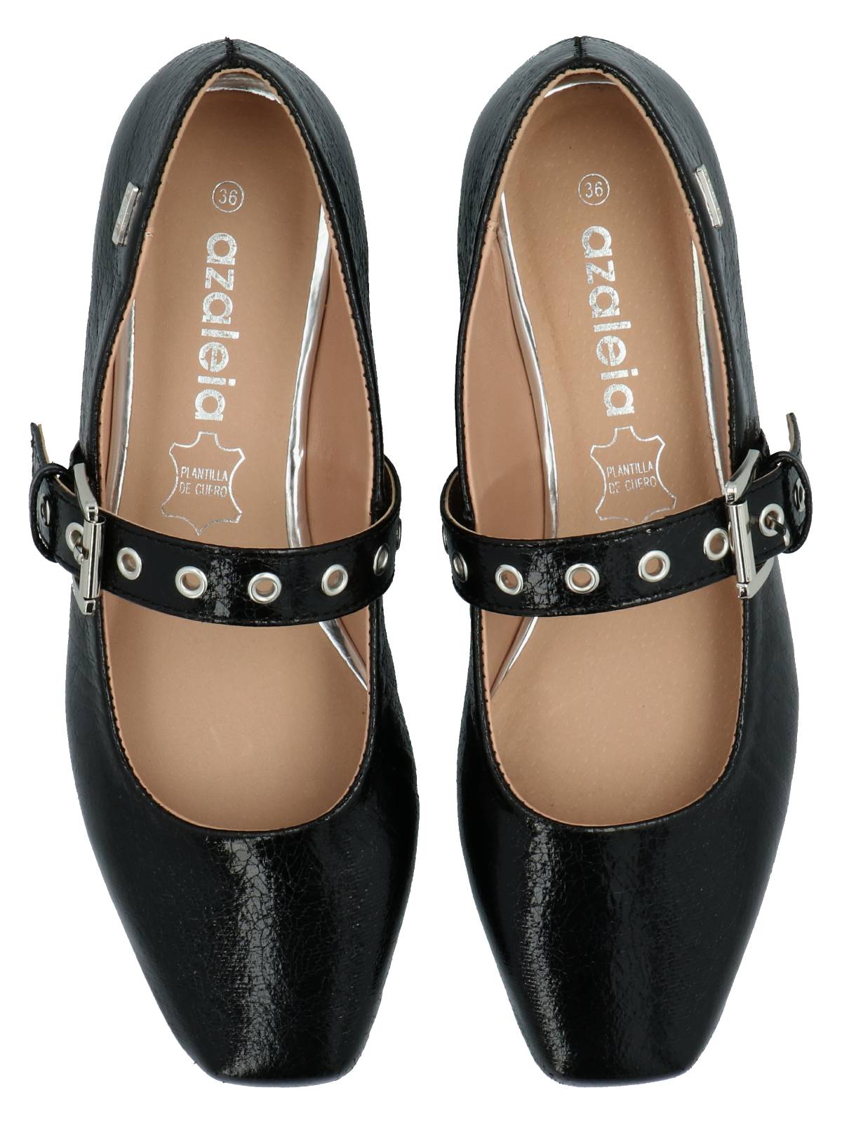 Ballerina mujer Azaleia con plantilla de cuero de alta densidad que otorga soporte, durabilidad y transpirabilidad evitando la acumulación de sudor. correa con hebilla de ajuste en empeine