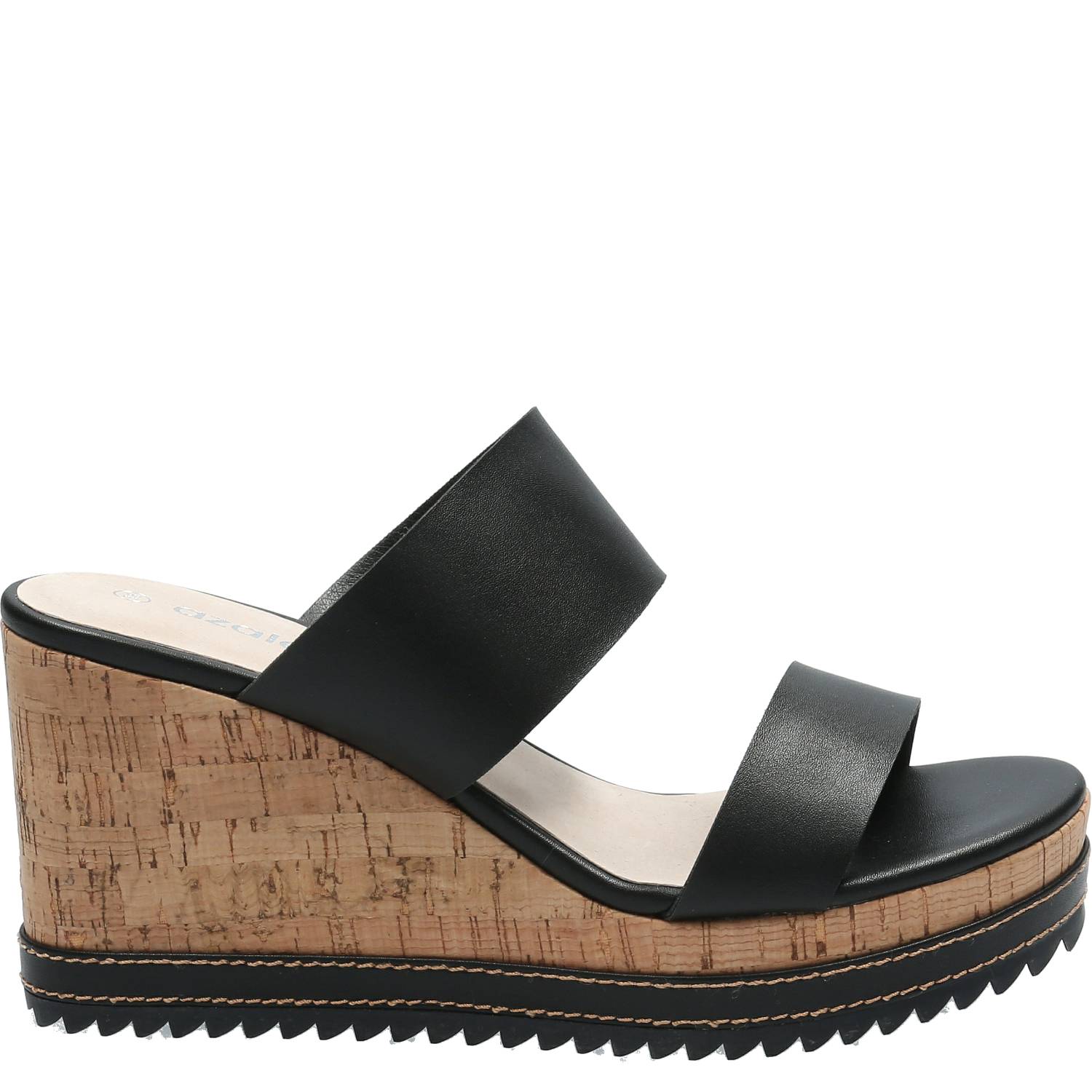 Sandalia mujer Azaleia, cuenta con plantilla de cuero acolchada que absorbe la humedad del pie además de otorgar amortiguación y comfort al caminar, además cuenta con un taco de corcho estilo plataforma y una pequeña plataforma delantera que evita una inclinación excesiva del pie otorgando mayor estabilidad.