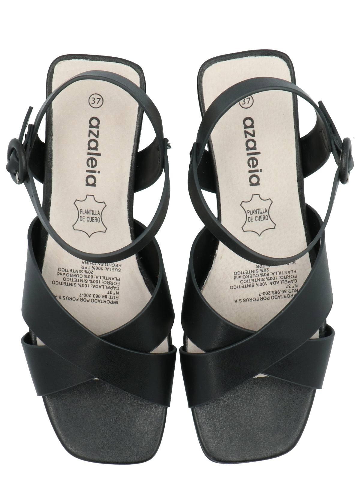 Sandalia mujer vestir Azaleia. Taco cuadrado. Capellada con dos correas entrecruzadas, ajuste correas en el tobillo. Plantilla cuero