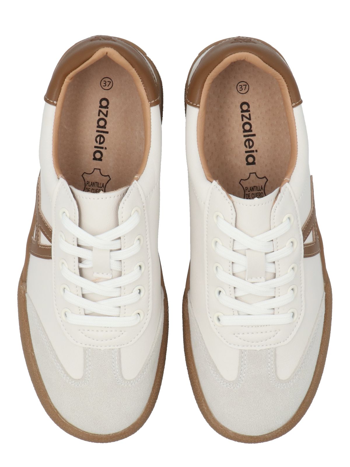 Zapatilla mujer Azaleia destaca por su diseño moderno y deportivo. Elegantes tonos beige que se complementa con detalles marrones oscuros de textura agamuzada que aportan sofisticación un estilo casual y muy versátil.